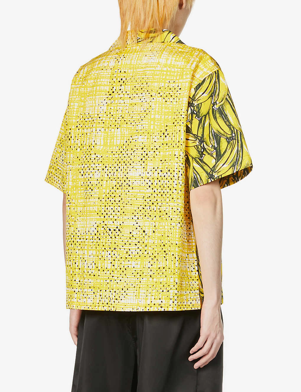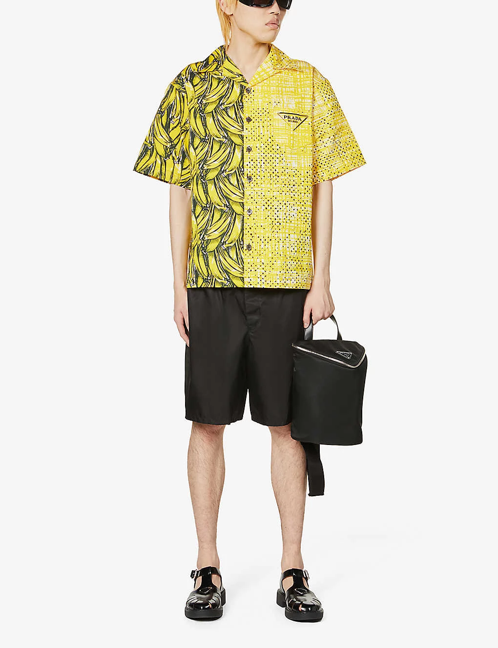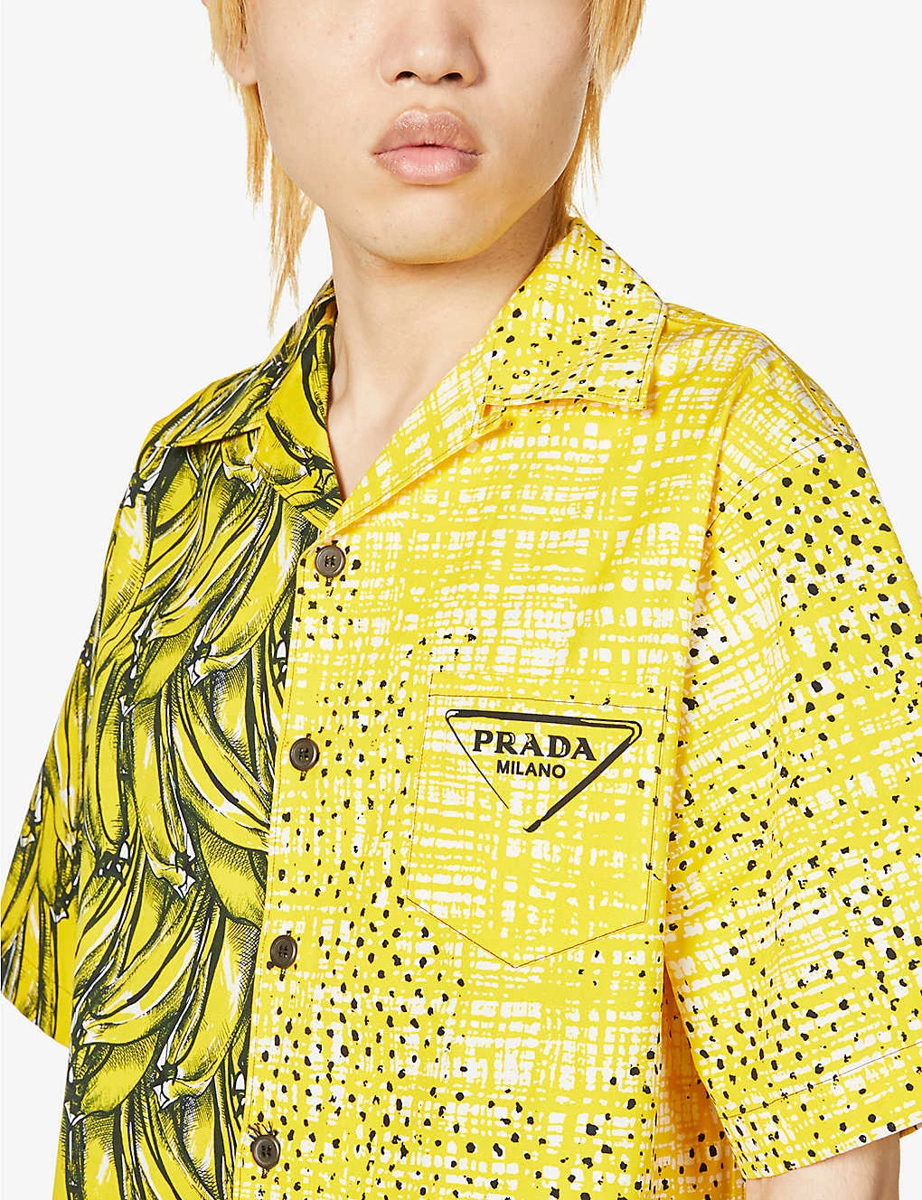 PRADA Banana-print Relaxed-fit Cotton-poplin Shirt For Mens Yellow