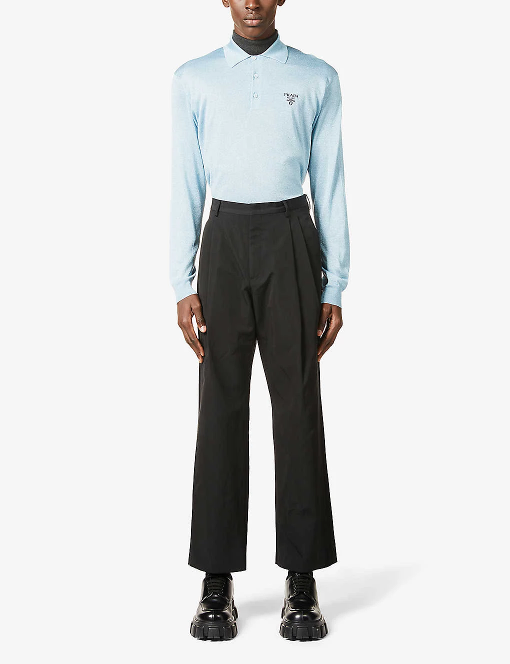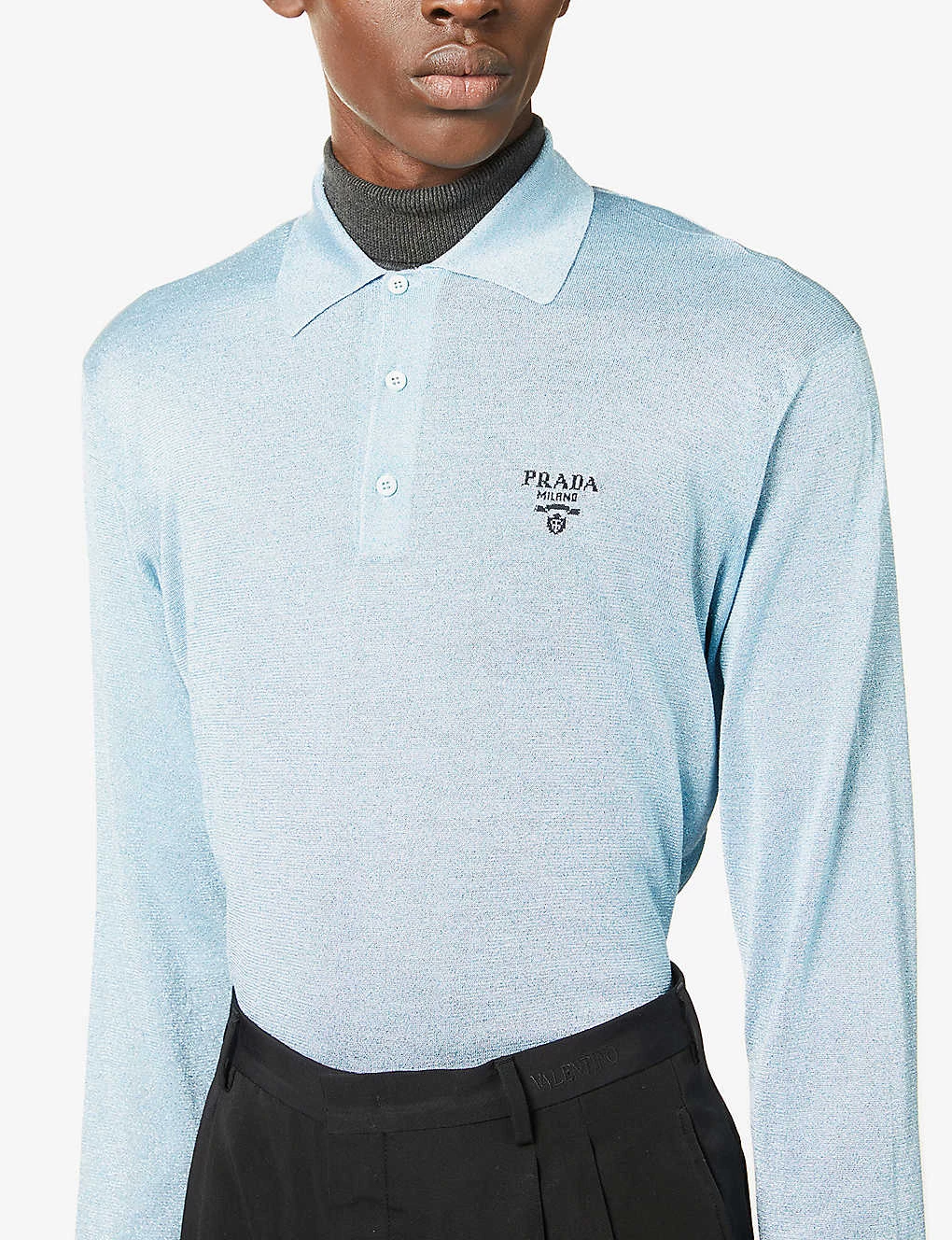 PRADA Brand-embroidered Regular-fit Polo Knit Top For Mens Cielo