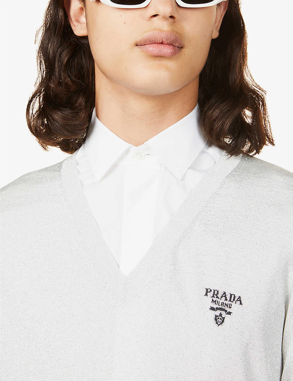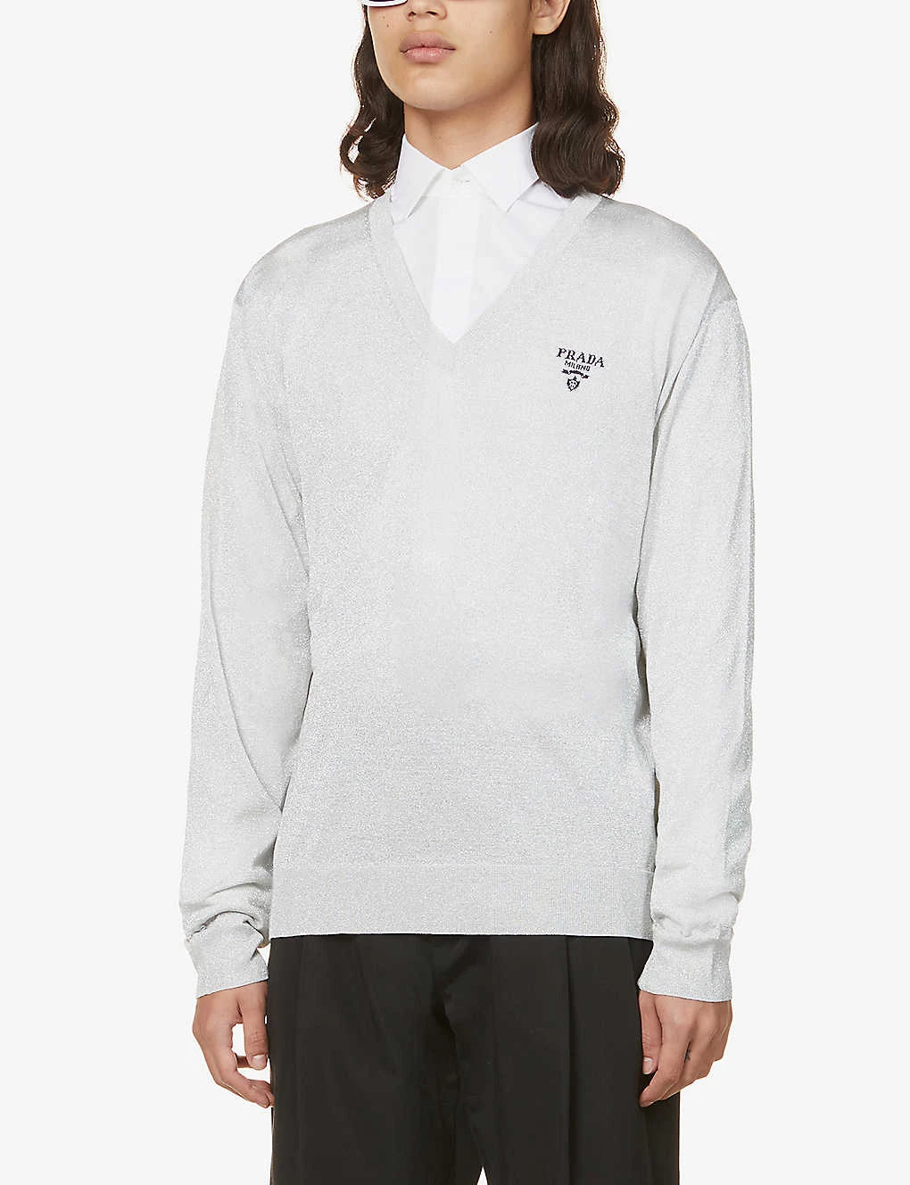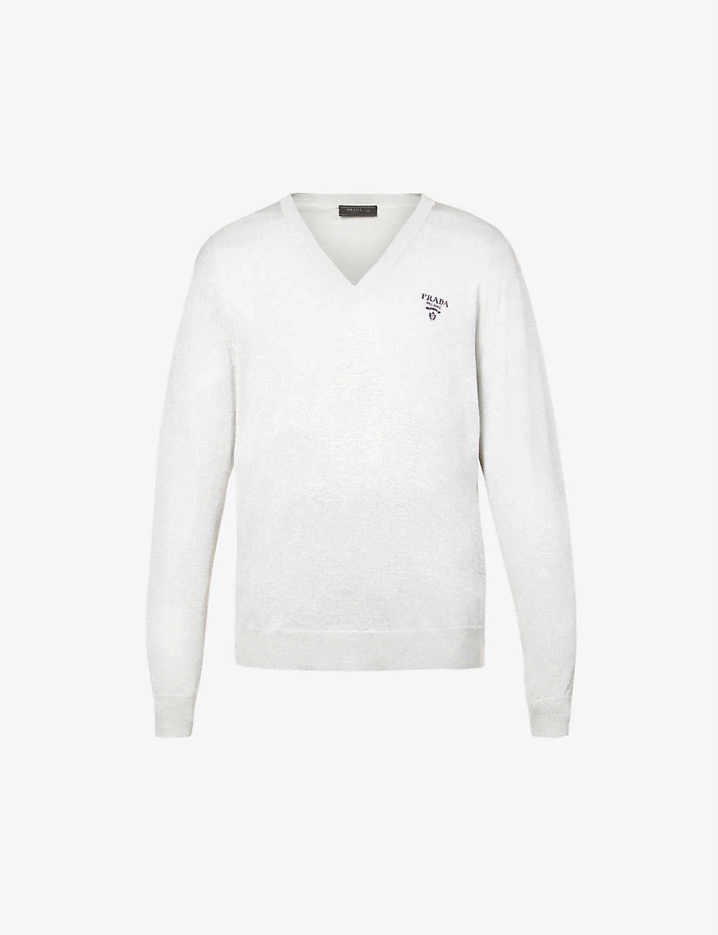 PRADA Brand-embroidered Relaxed-fit Silk-blend Jumper For Mens Argento