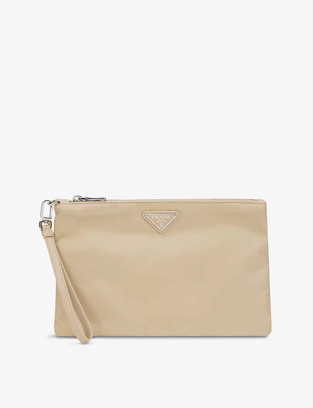 PRADA Brand-plaque Recycled-nylon Clutch Bag For Mens Deserto