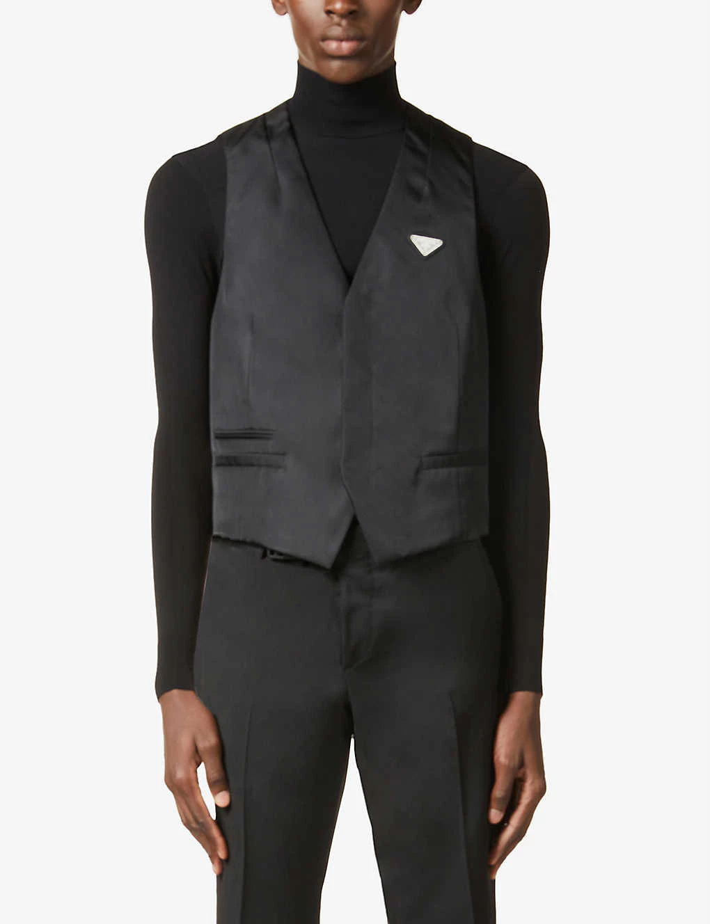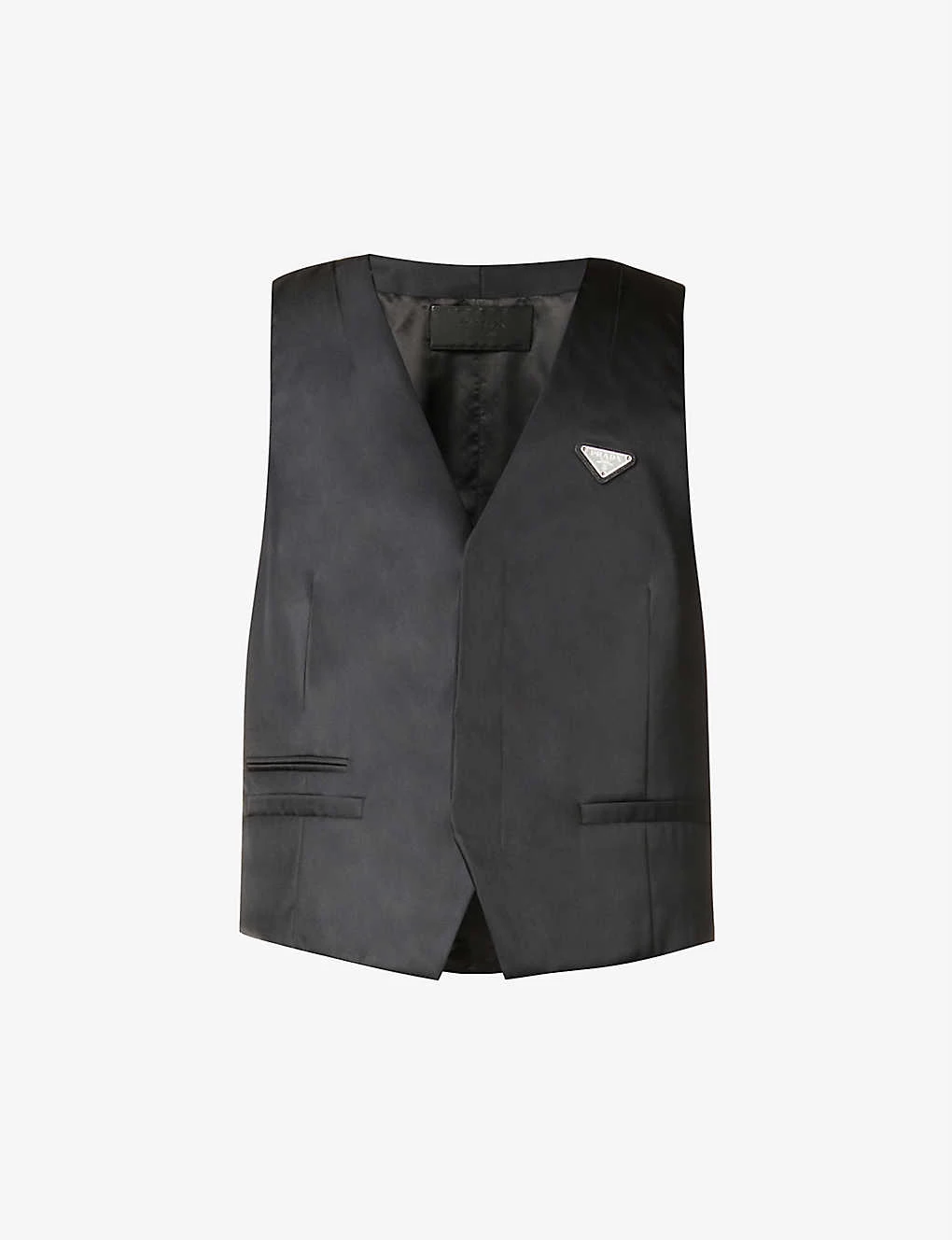 PRADA Brand-plaque Sleeveless Recycled-nylon Waistcoat For Mens Nero