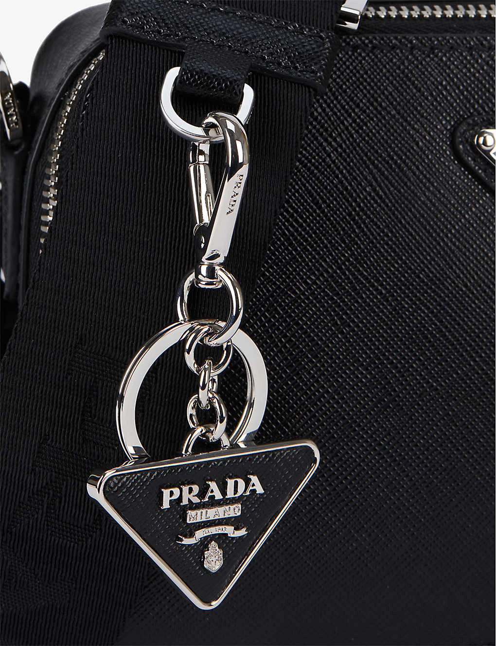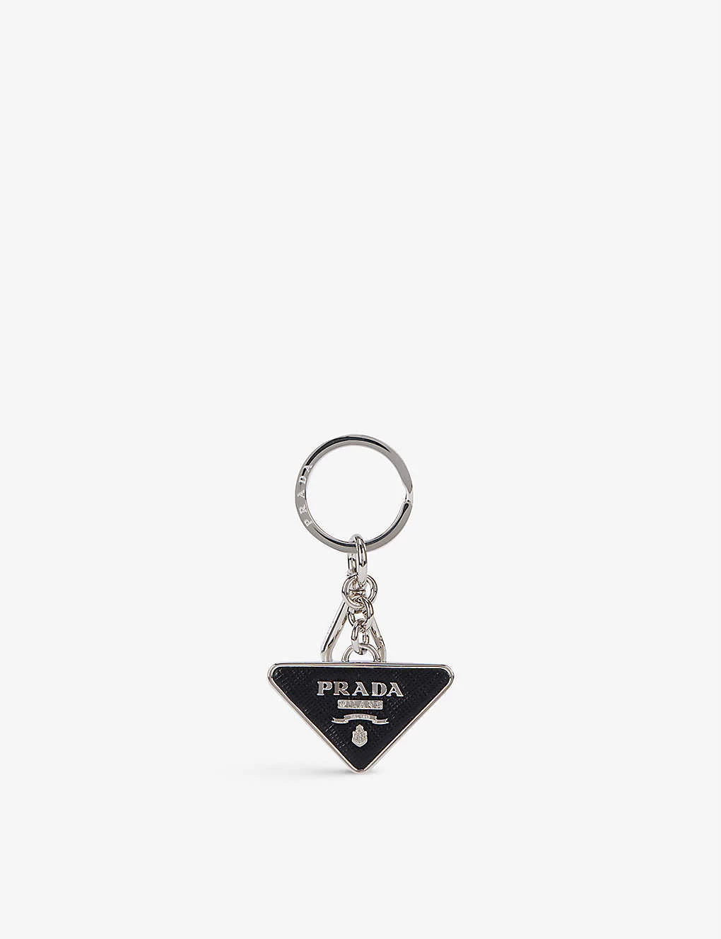 PRADA Brand-plaque Steel And Leather Keyring For Mens Nero