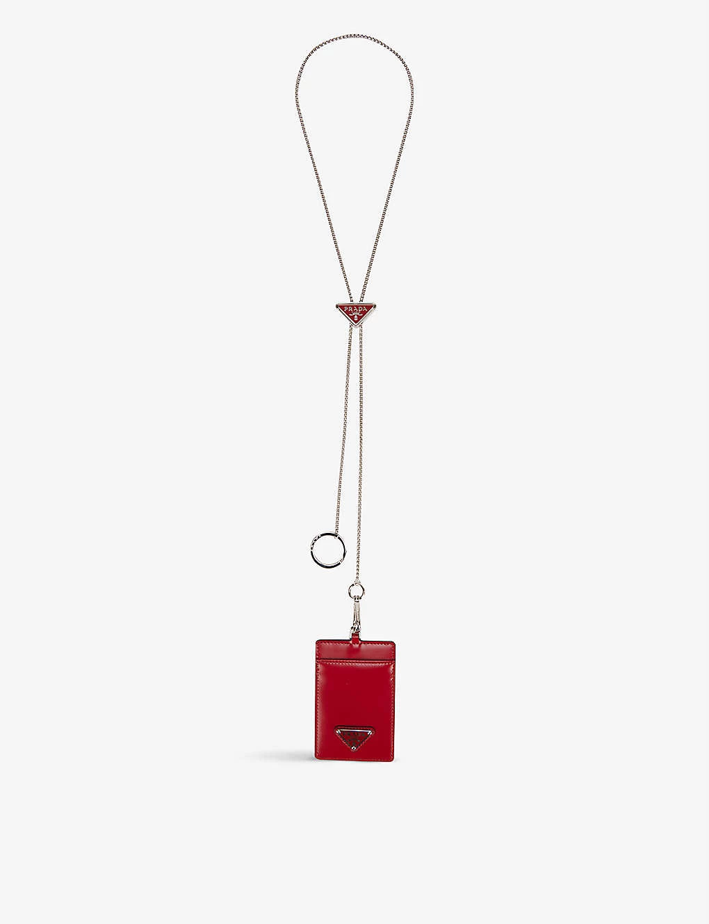 PRADA Branded Leather Cardholder On Chain For Womens Scarlatto