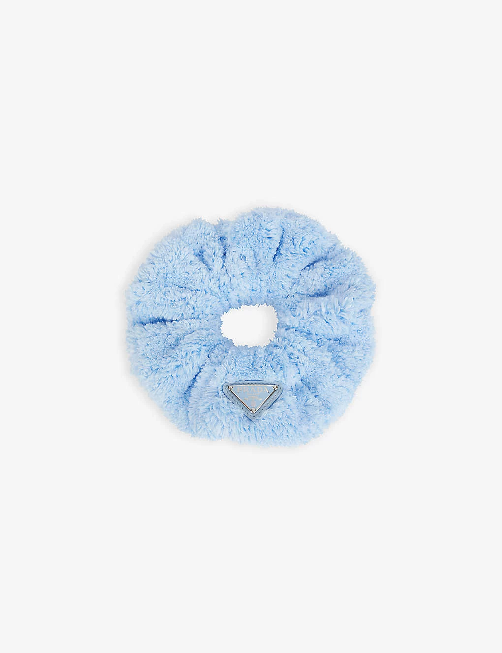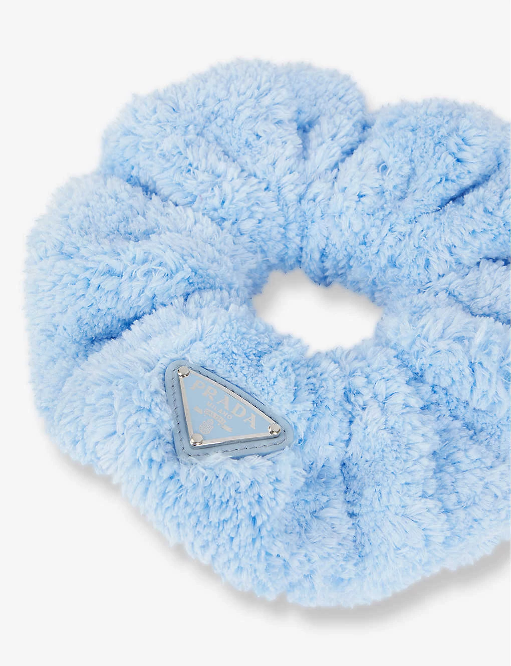 PRADA Branded-plaque Terry-textured Stretch-woven Scrunchie For Womens Celeste