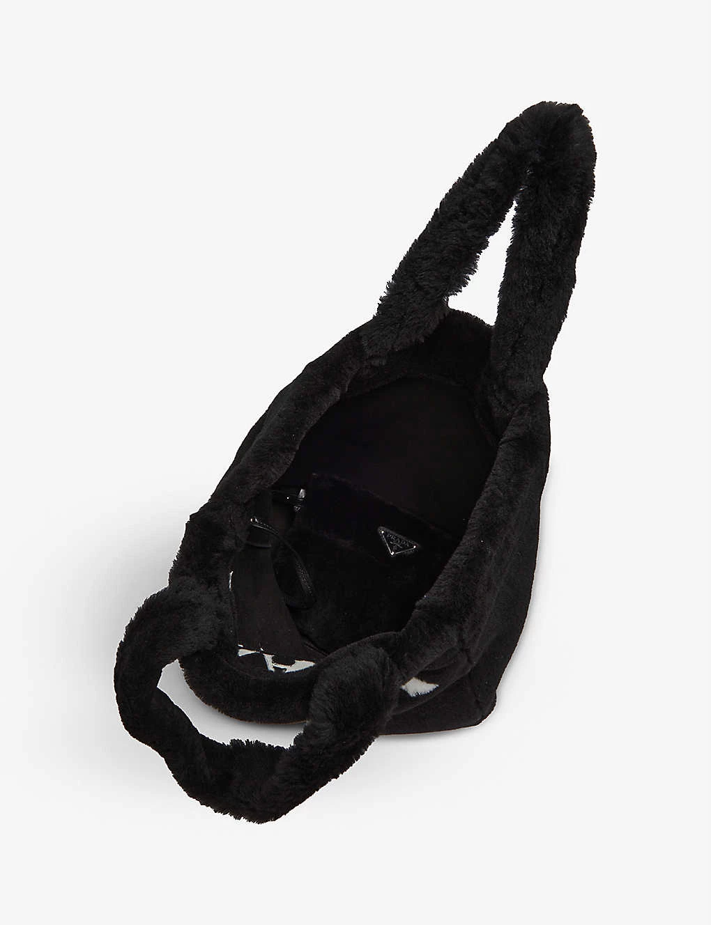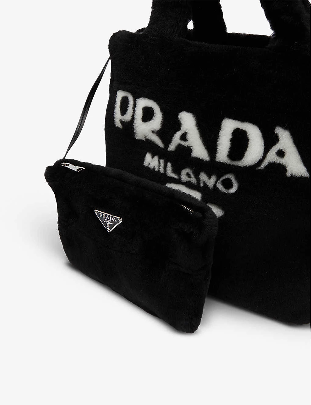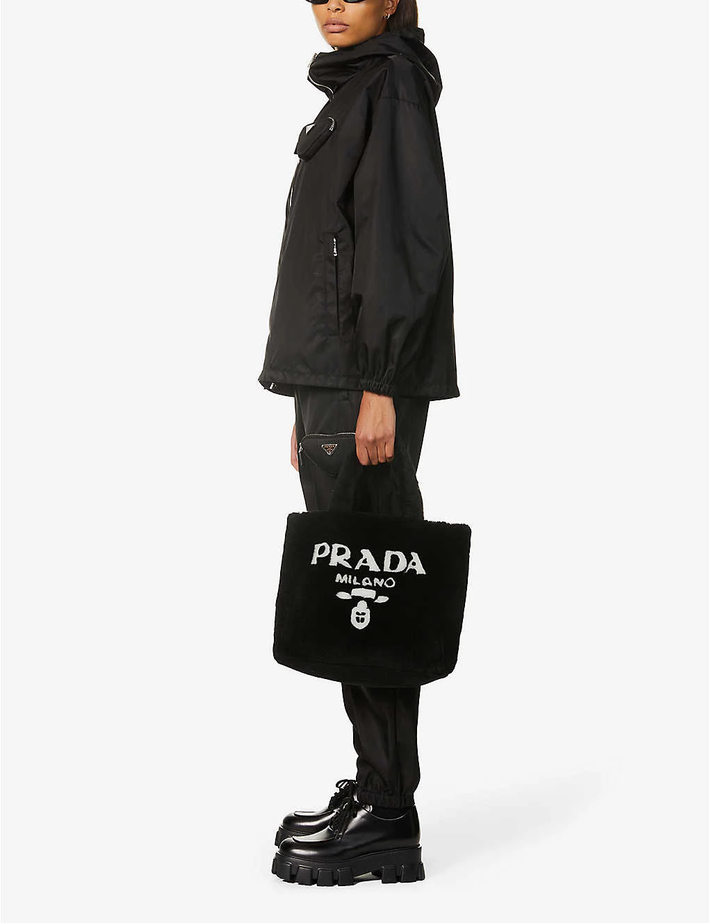PRADA Branded Shearling Tote Bag For Womens Nero+bianco