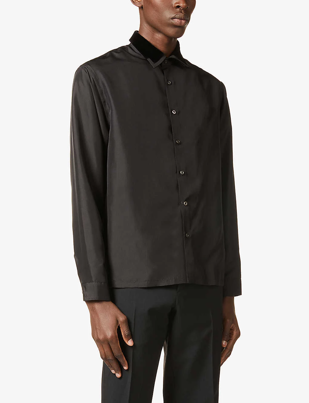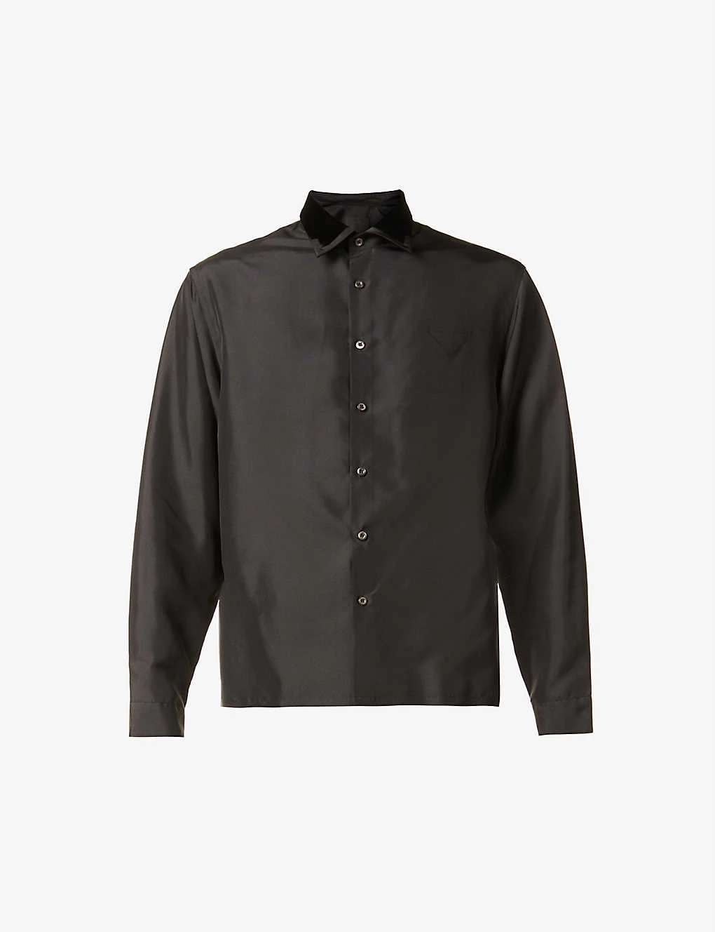 PRADA Branded-tag Relaxed-fit Silk Shirt For Mens Nero