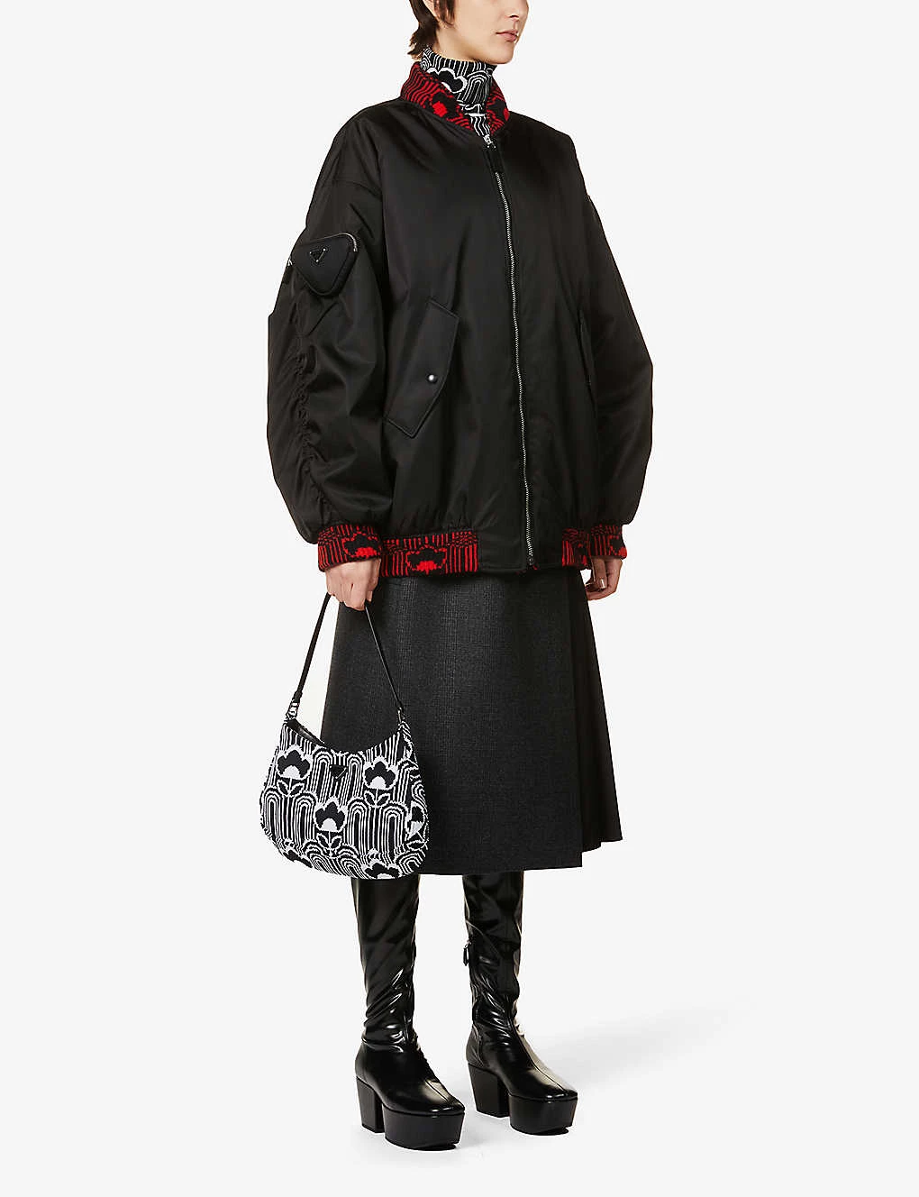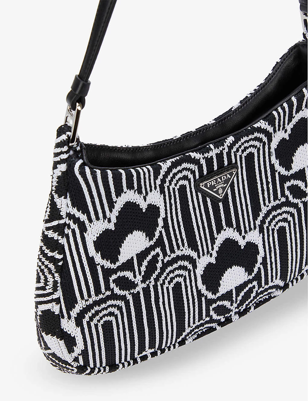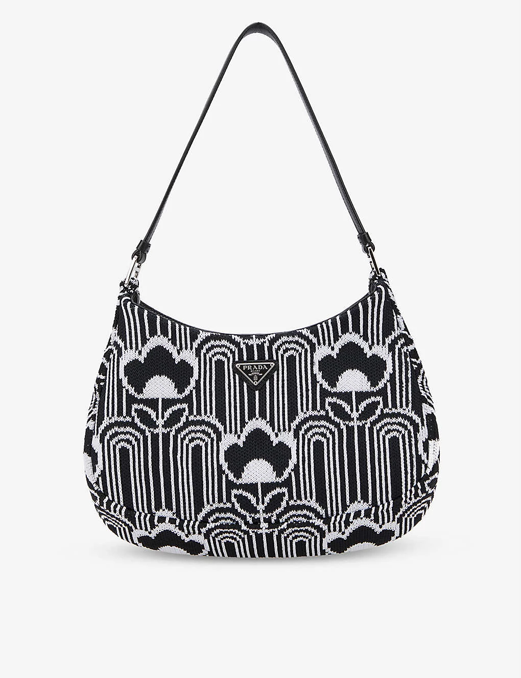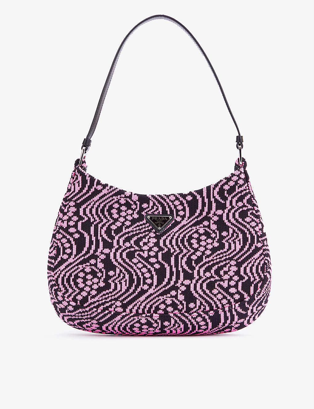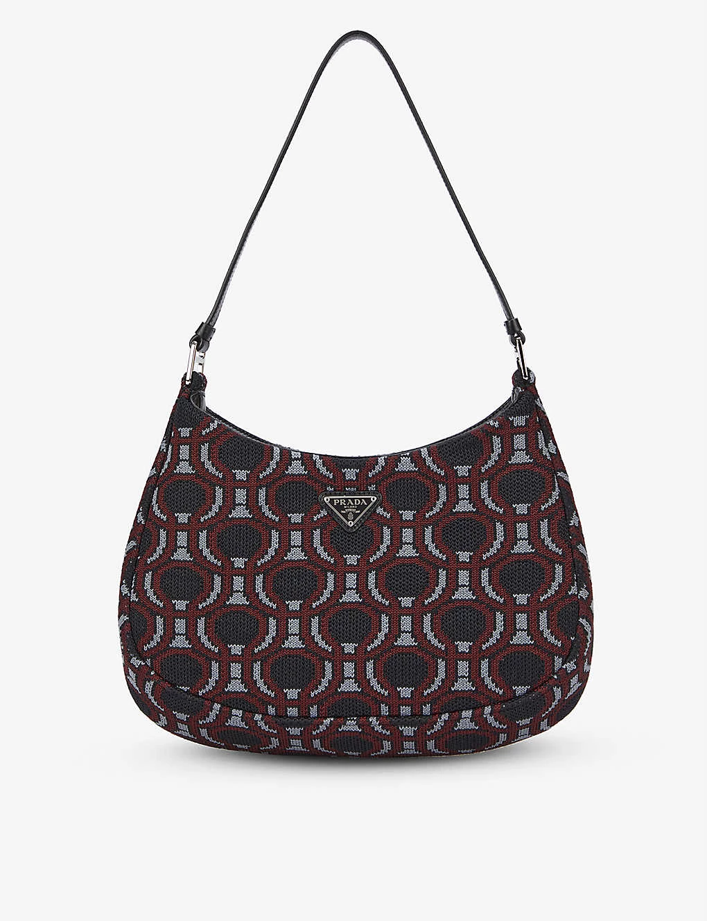 PRADA Cleo Patterned Jacquard Shoulder Bag For Womens Nero+bordeaux