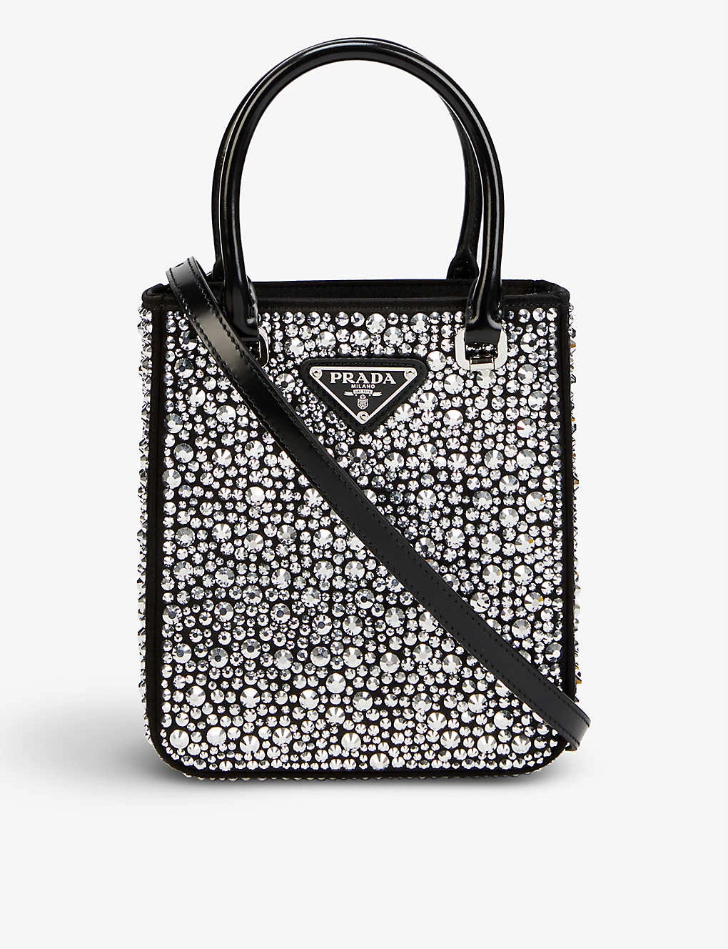 PRADA Crystal-embellished Leather Cross-body Bag For Womens Metal