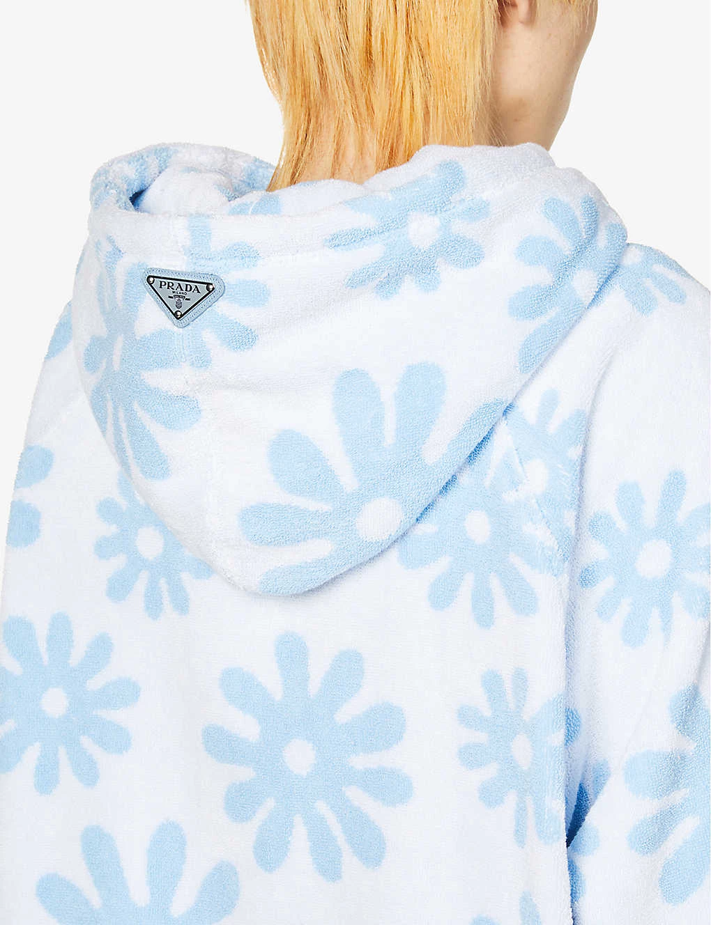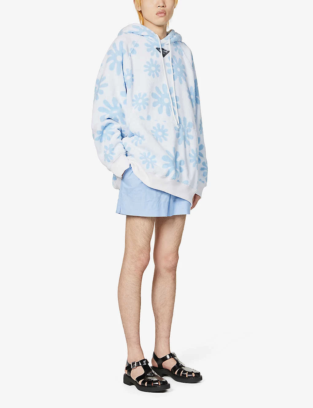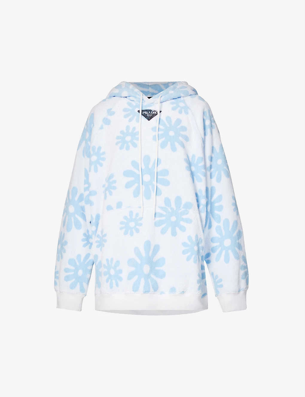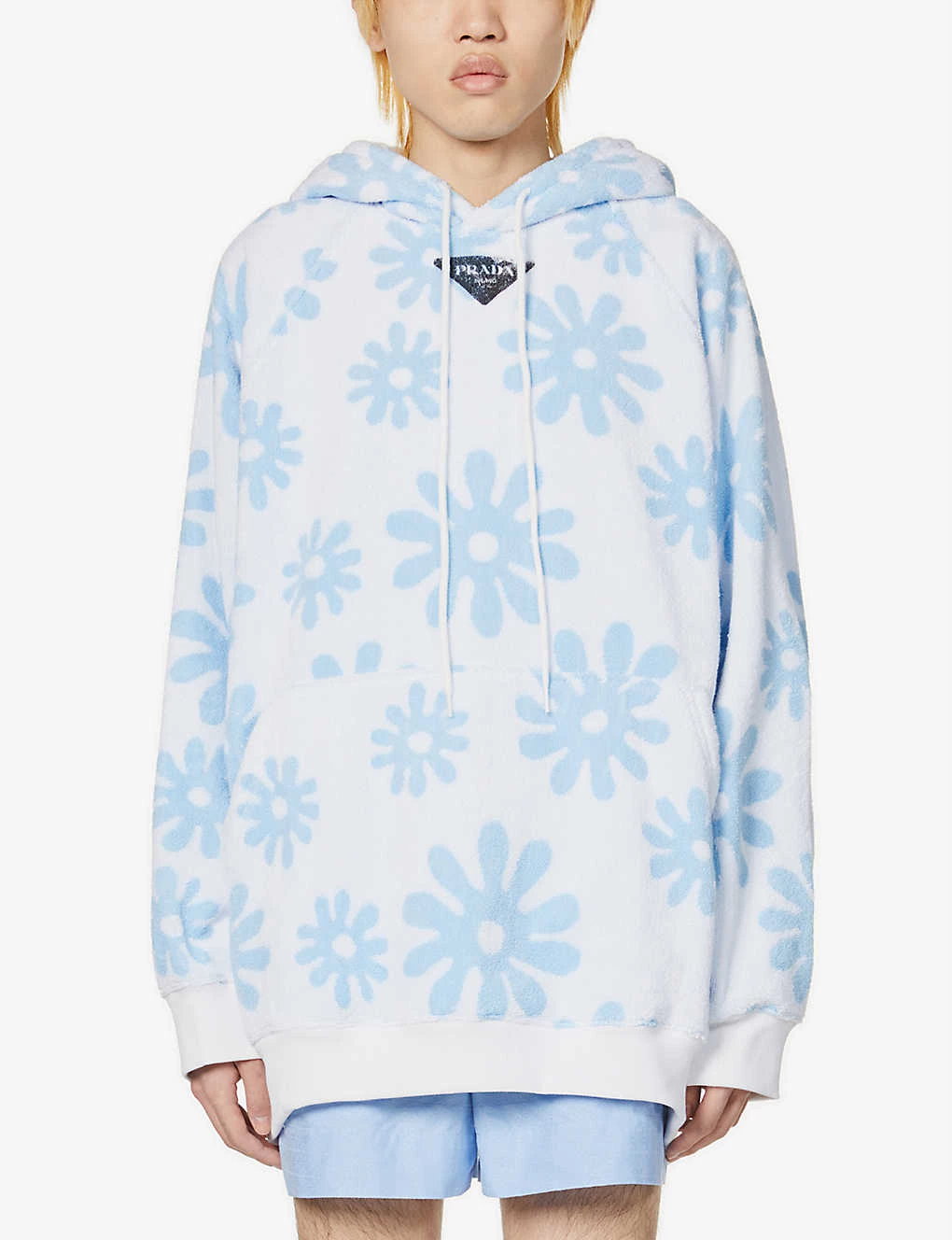 PRADA Floral-print Relaxed-fit Cotton-fleece Hoody For Mens Azzurro