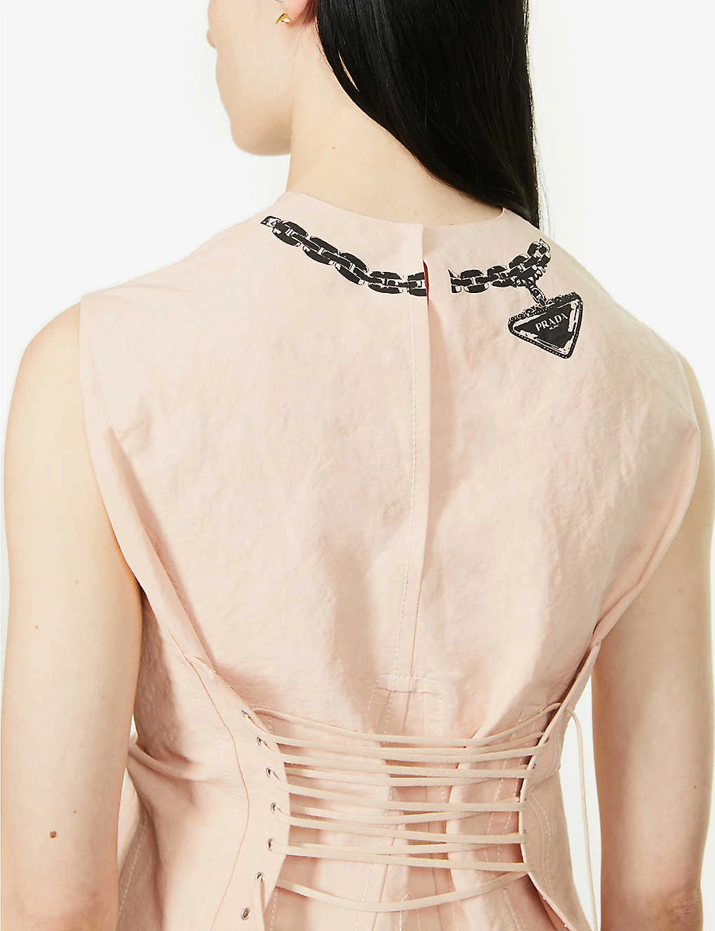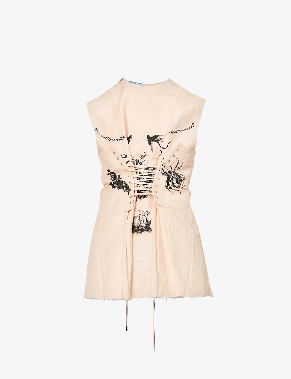 PRADA Graphic-print Lace-up Linen And Cotton-blend Top For Womens Opale