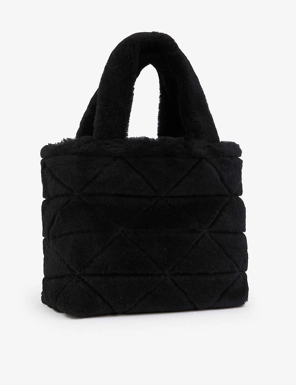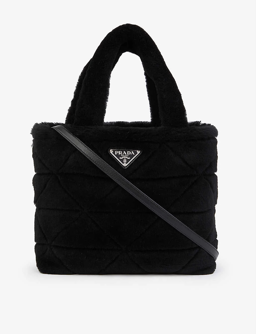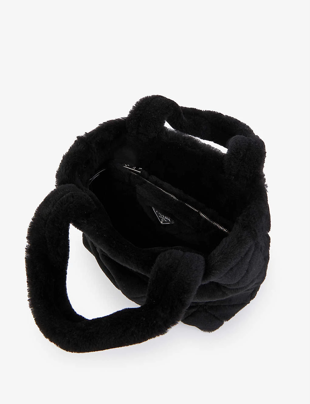 PRADA Logo-plaque Leather And Shearling Tote Bag For Womens Nero