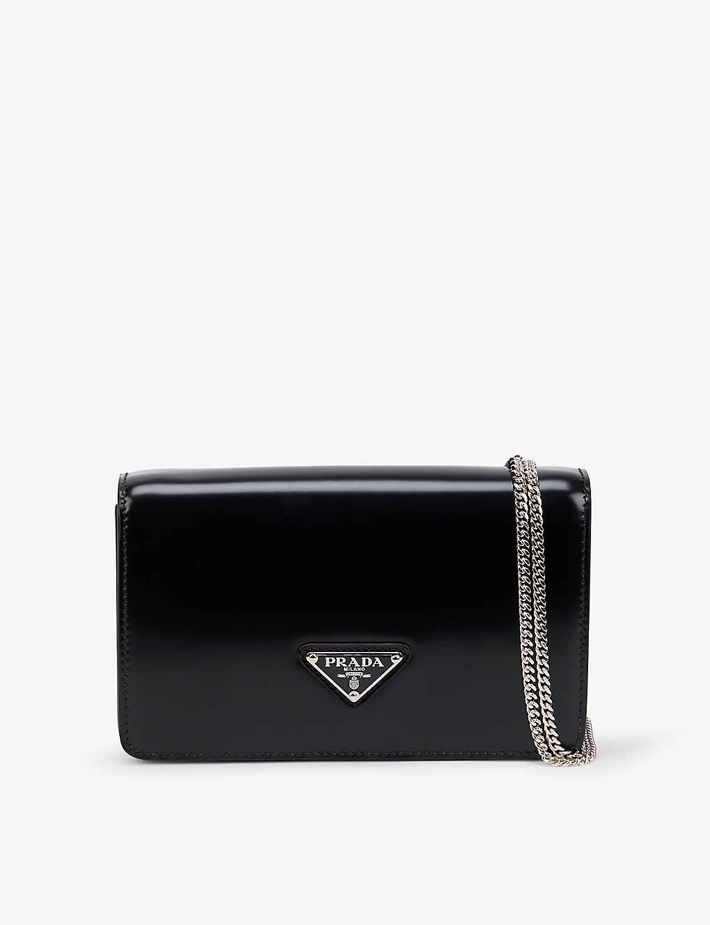 PRADA Logo-plaque Micro Leather Shoulder Bag For Womens Nero
