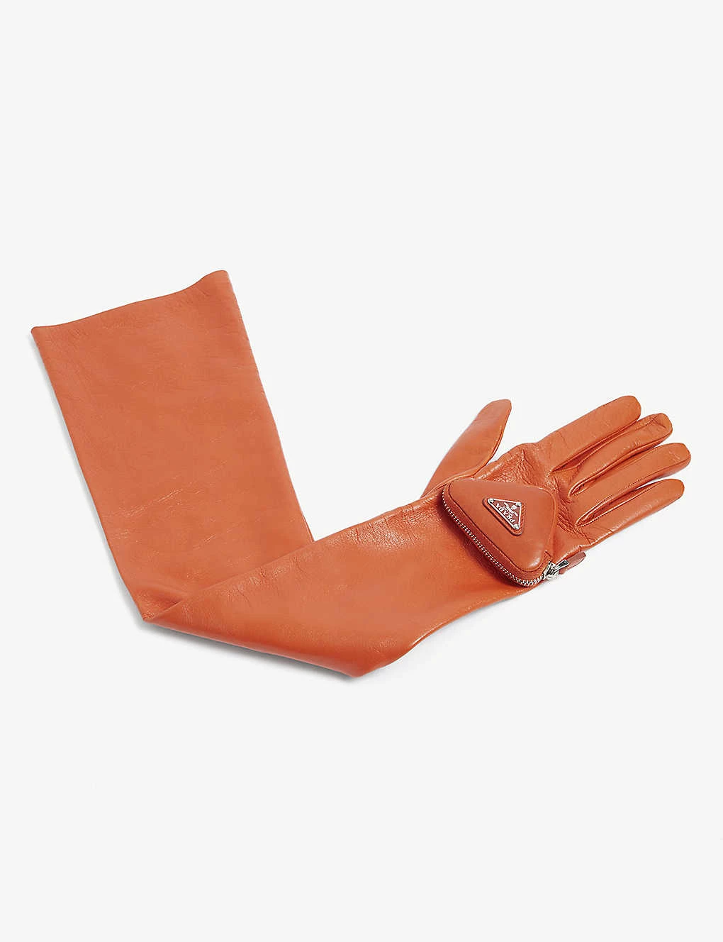 PRADA Pouch-embellished Leather Gloves For Womens Arancio