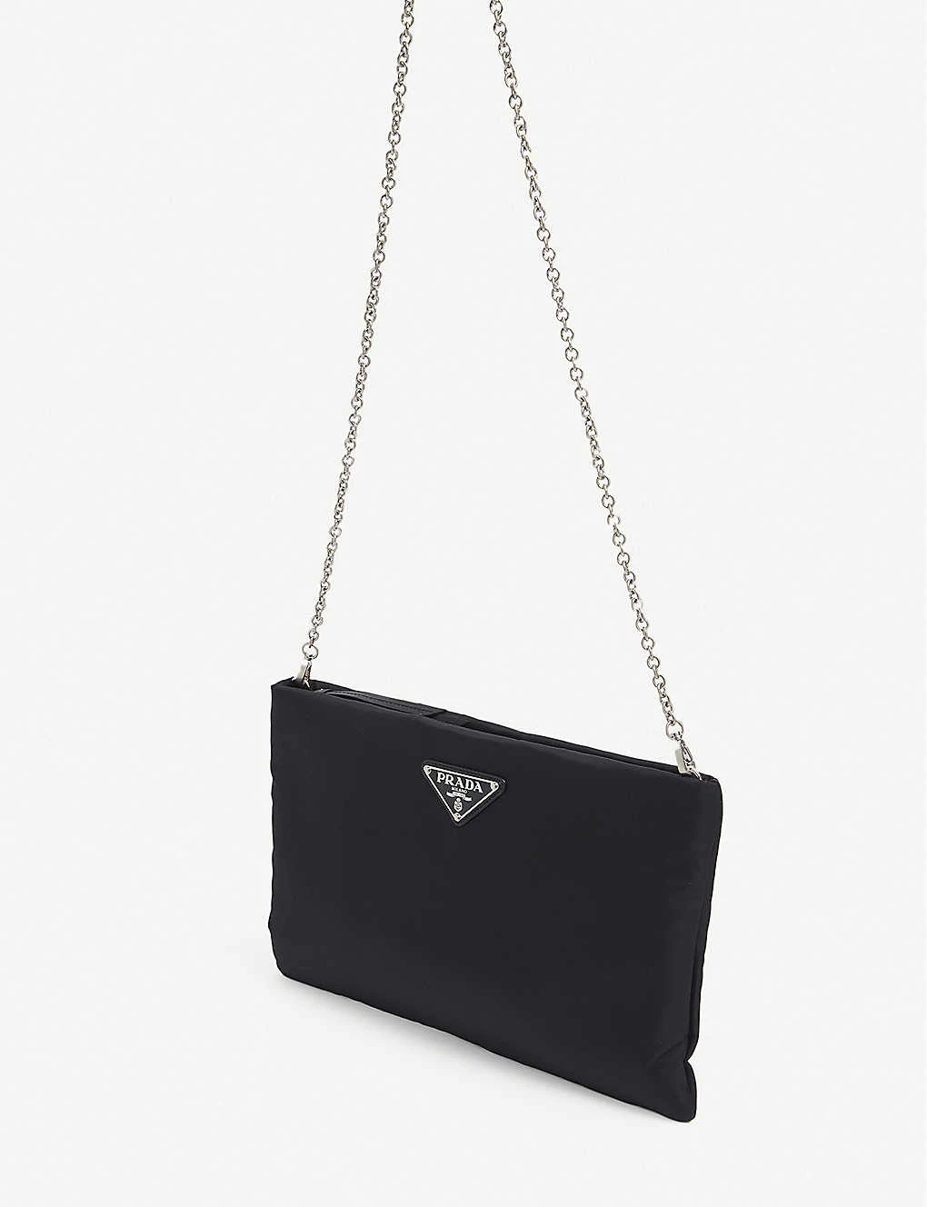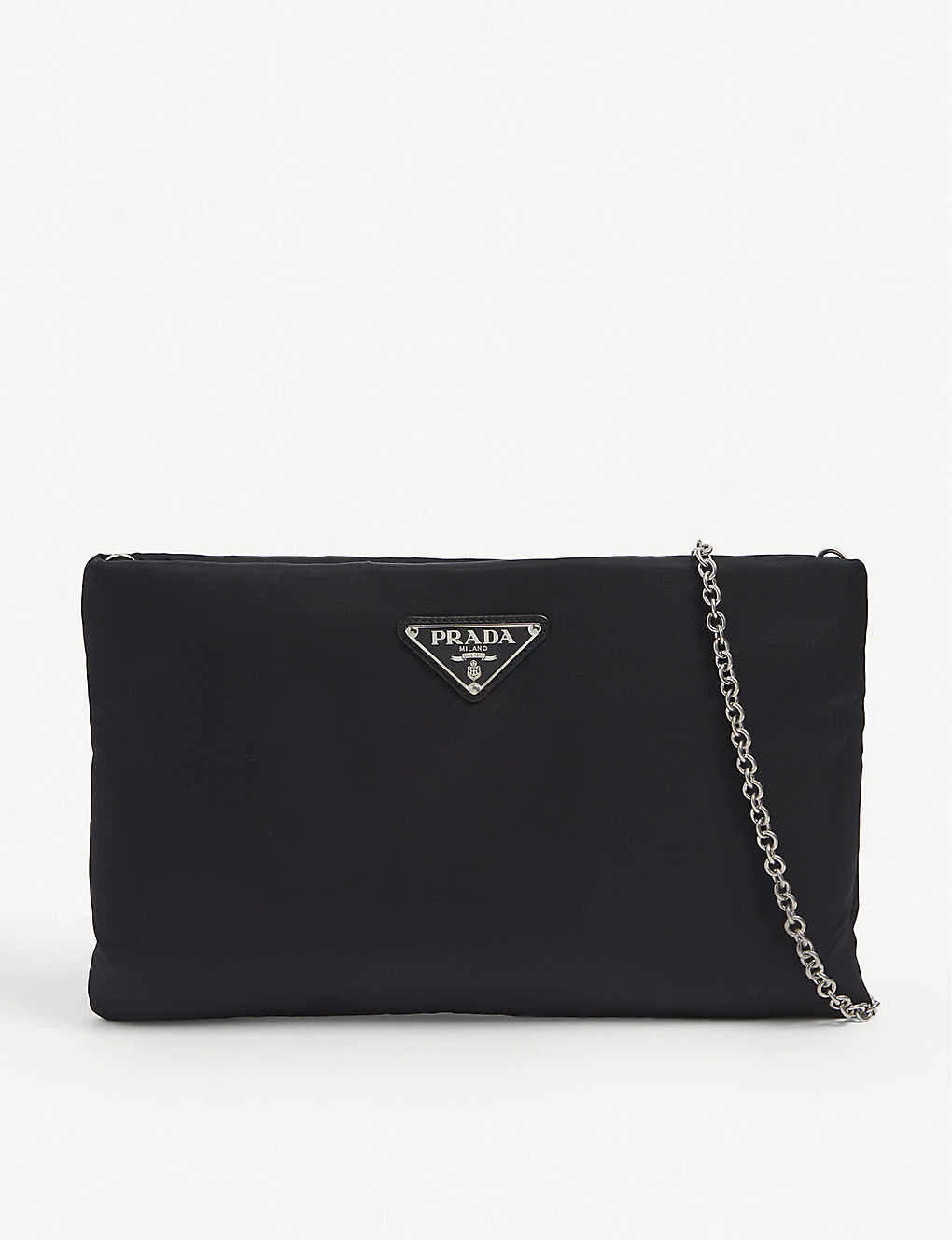 PRADA Pouchette Branded Shell Pouch Bag For Womens Nero