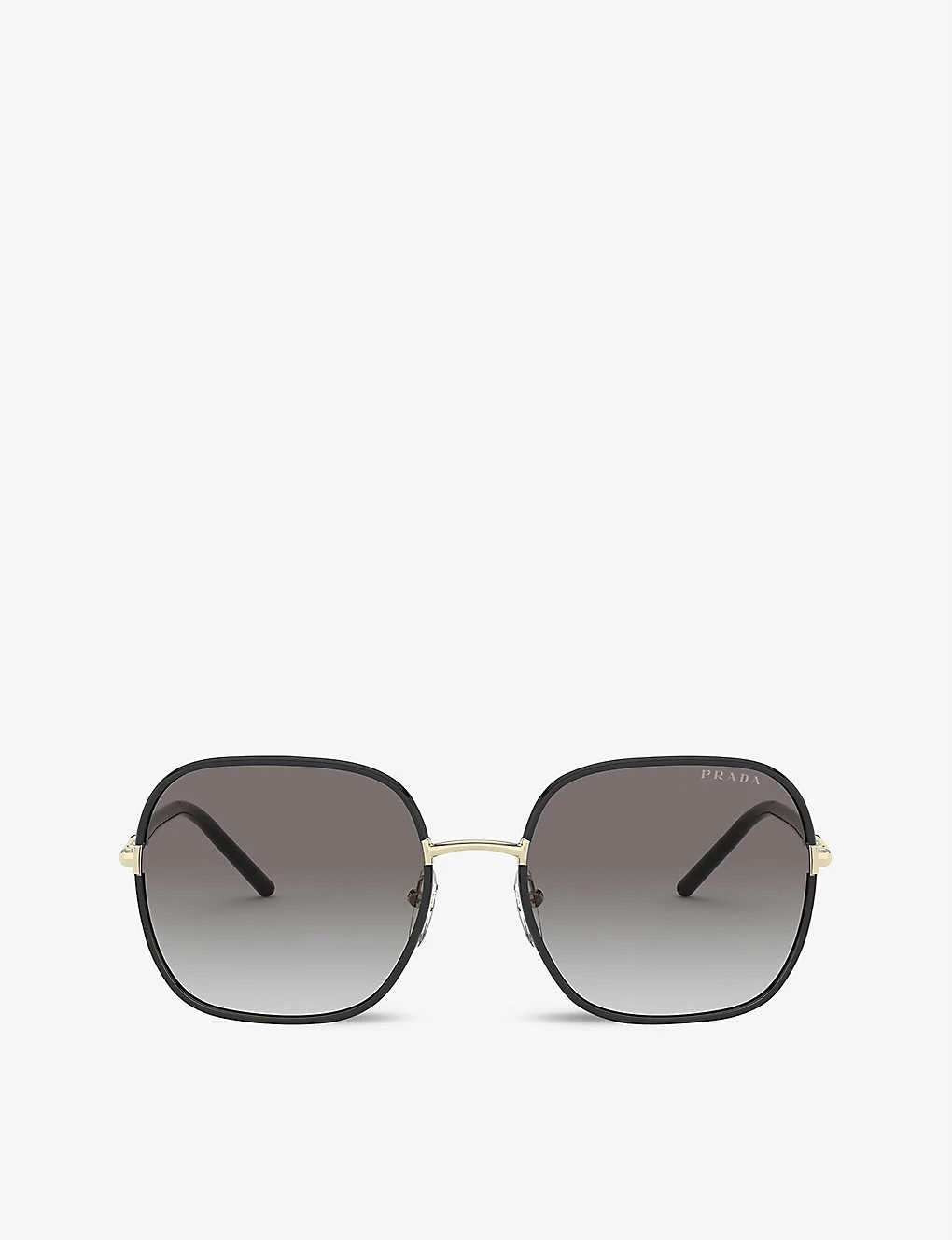 PRADA PR 67XS 58 Rectangle-frame Metal Sunglasses For Womens Black