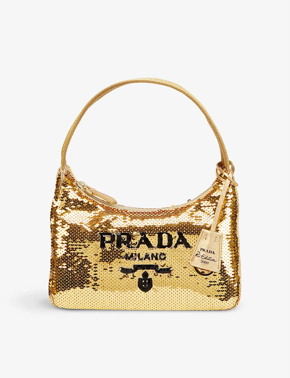 PRADA Re-Edition 2000 Re-Nylon Mini Sequinned Shoulder Bag For Womens Platino+nero