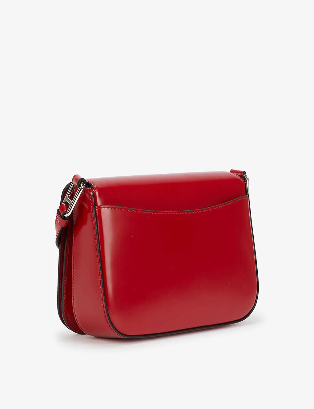 - Adjustable shoulder strap, enamelled brand plaque at front, flap closure at front, external slip pocket at back, internal slip pocket, enamelled brand plaque at interior, fully lined, silver-toned hardware