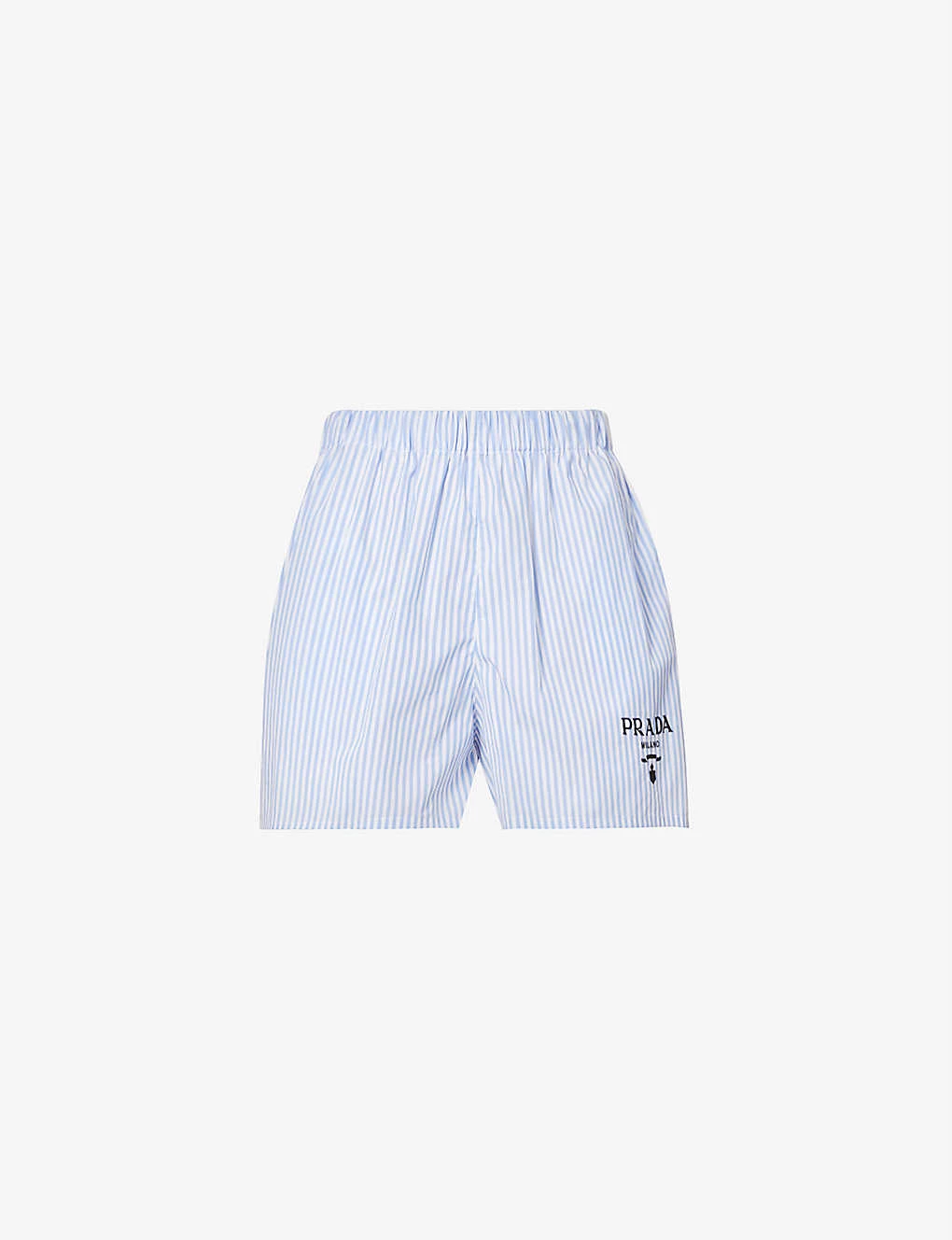 PRADA Striped Mid-rise Cotton Shorts For Womens Celeste