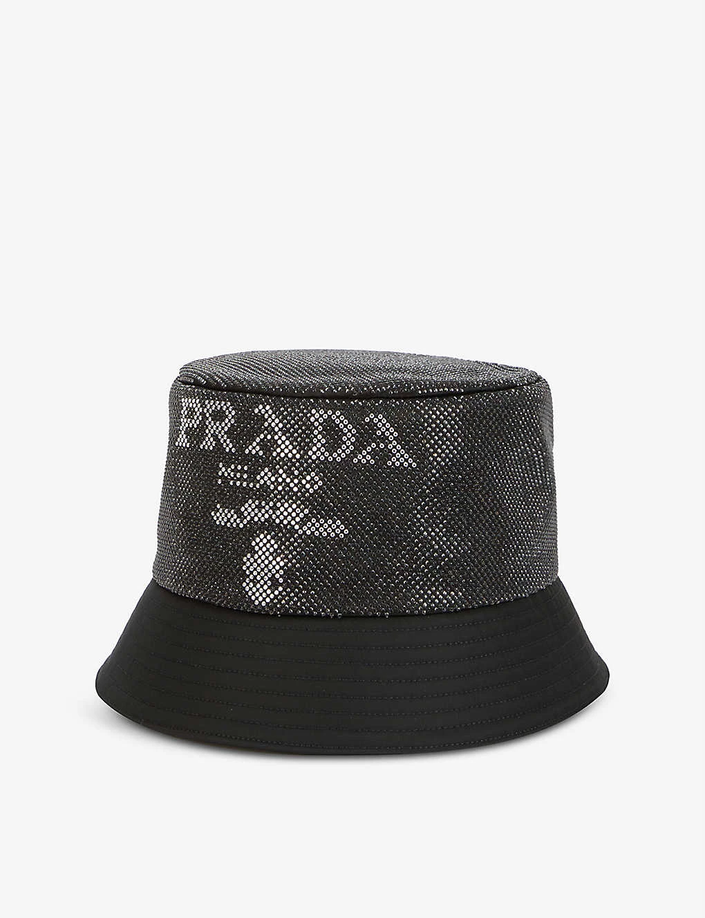 PRADA Stud-embellished Brand-print Recycled-polyamide And Silk Bucket Hat For Womens Nero