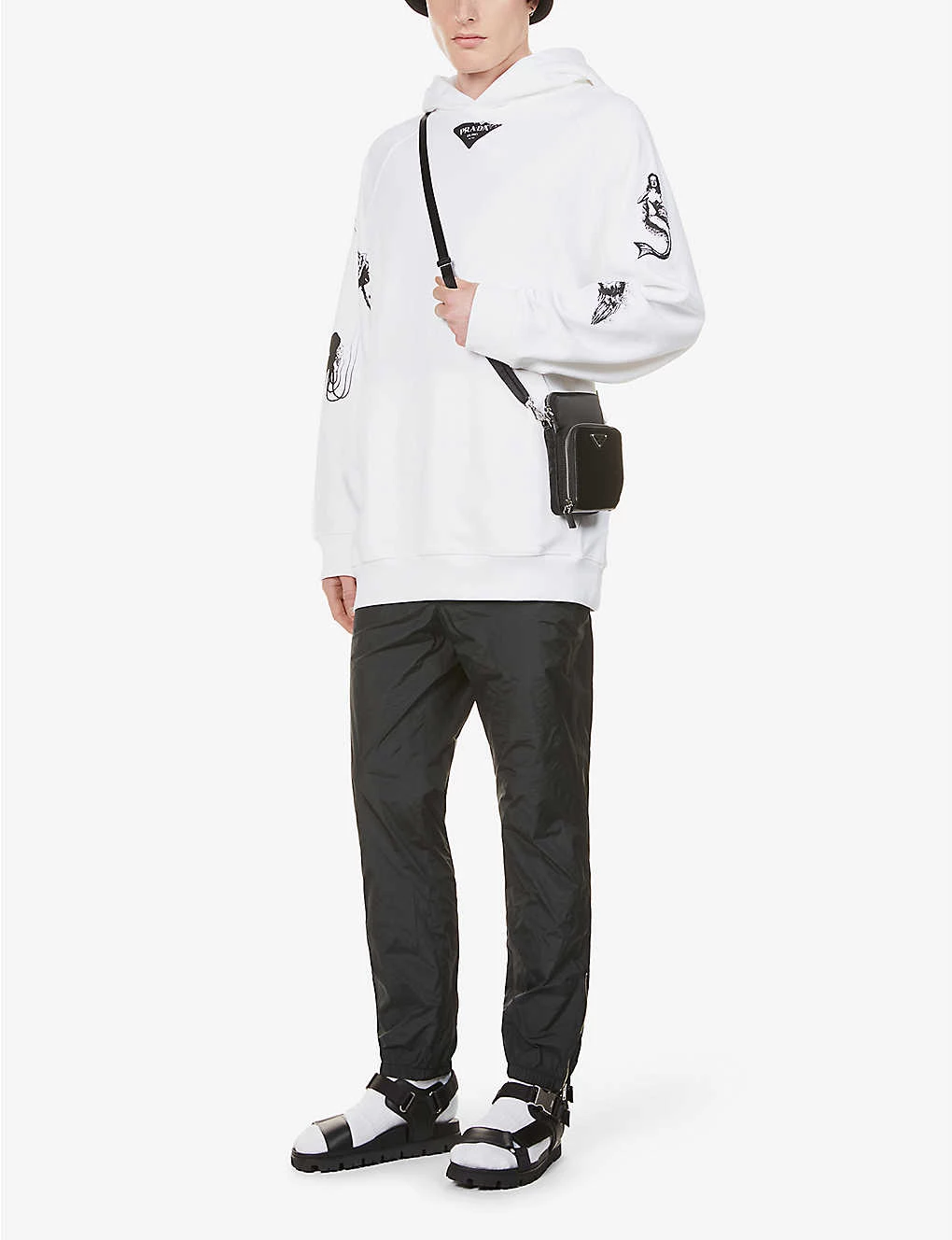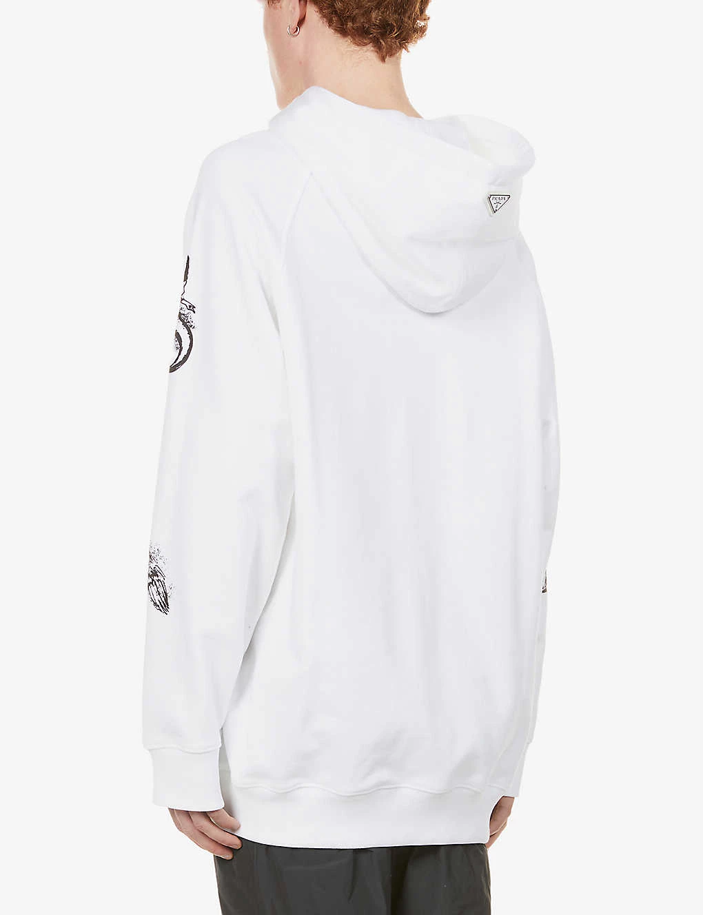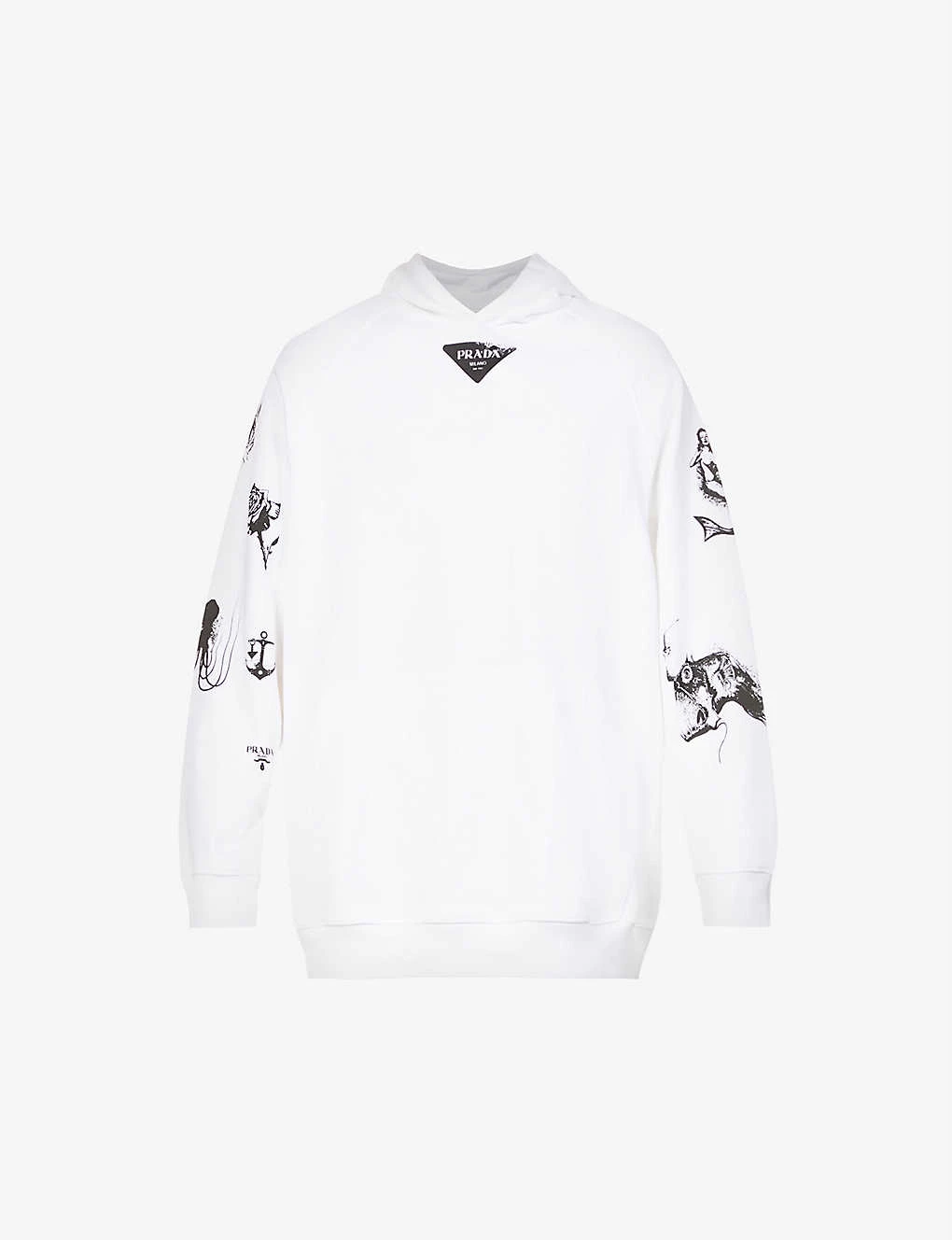 PRADA Symbol Graphic-print Cotton-jersey Hoody For Mens Bianco