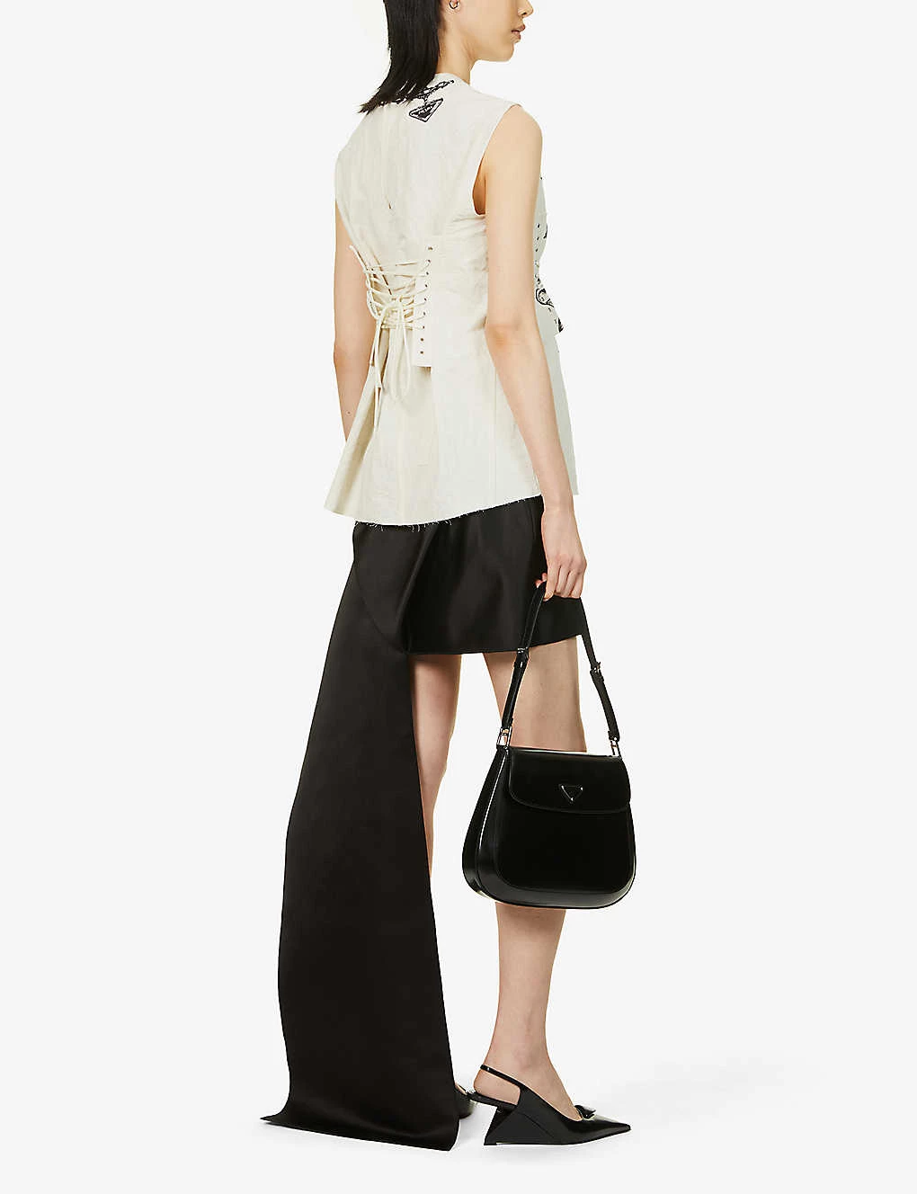 PRADA Train-embellished Silk-satin Mini Skirt For Womens Nero
