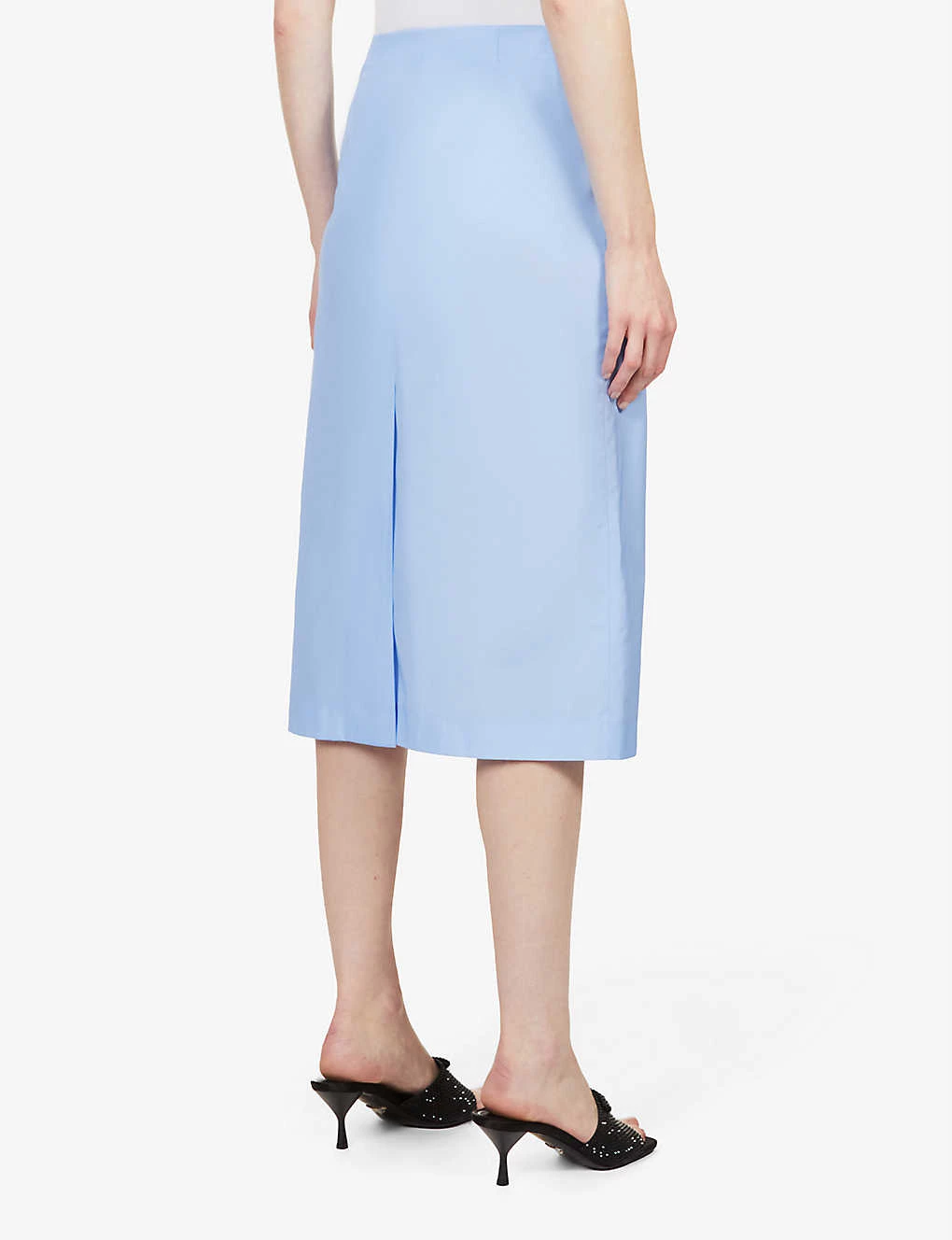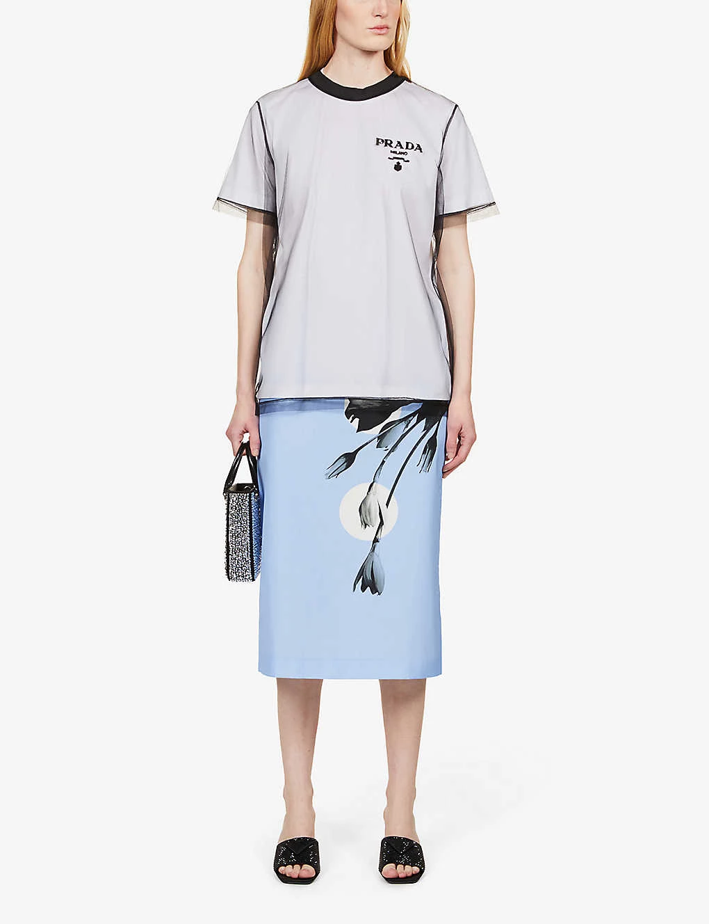 PRADA Tulip-print High-waist Cotton-poplin Midi Skirt For Womens Celeste