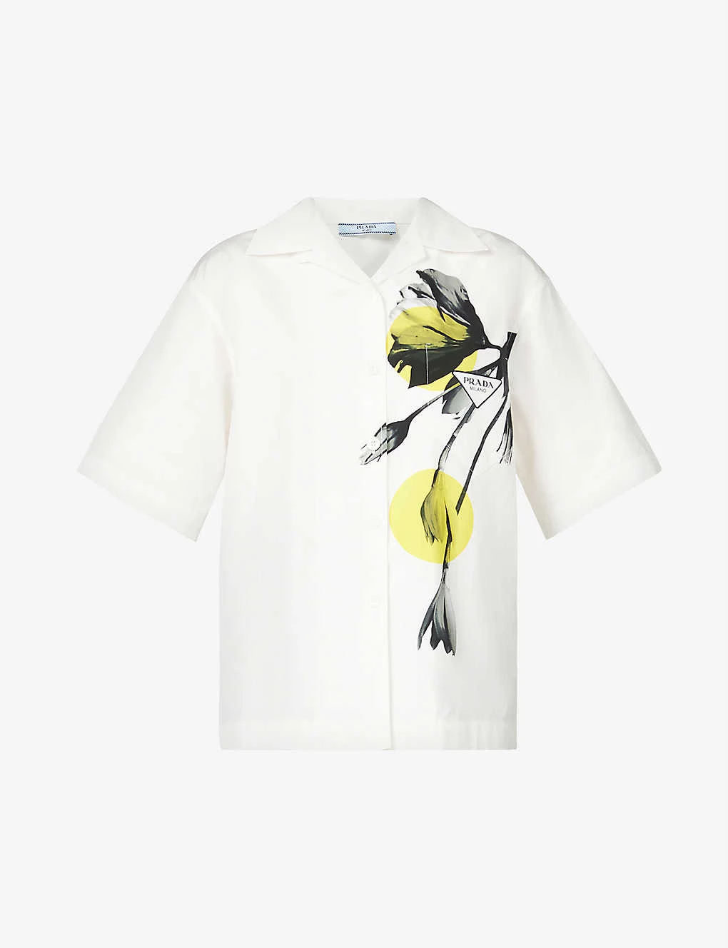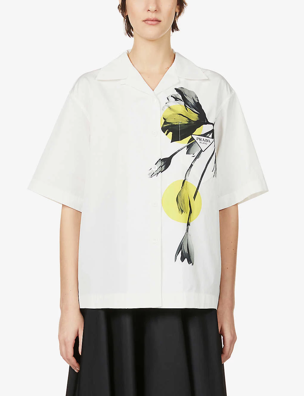 PRADA Tulip-print Short-sleeved Cotton-poplin Shirt For Womens Bianco