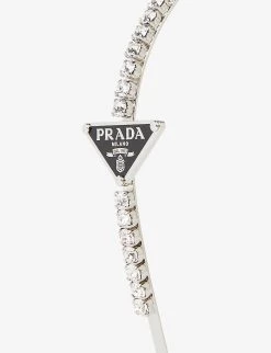 PRADA Logo-plaque Brass And Crystal Hairband Nero + Crystal