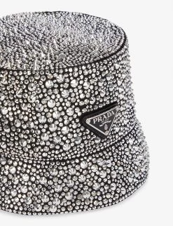 PRADA Crystal-embellished Silk-blend Bucket Hat For Womens Metal